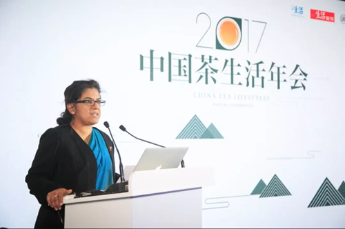 斯里蘭卡駐華大使商務參贊Ruwanthi Ariyarathne 女士出席了年會并致辭。她提到了一帶一路戰略中茶理應起到的作用:“1867年斯里蘭卡開始了第一次的茶葉商業化生產,現在茶已成為斯里蘭卡最為核心的飲品。一帶一路將促進中斯互通互聯,茶是兩國關系中一重要合作領域。我們可通過經驗、文化、技術的分享,來促進經濟貿易合作。”