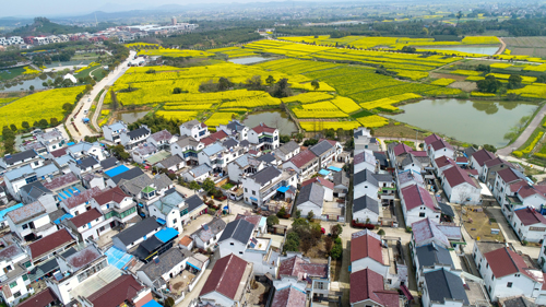 這是在江蘇省南京市高淳區椏溪國際慢城拍攝的油菜花田和民居 李響攝