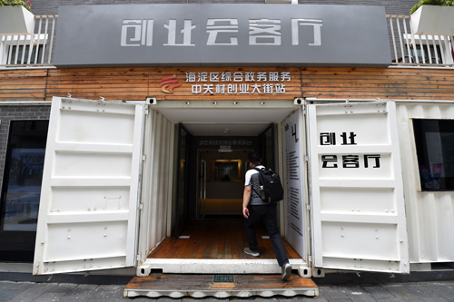 一名咨詢者走入位于北京海淀區(qū)中關村創(chuàng)業(yè)大街的創(chuàng)業(yè)會客廳。 鞠煥宗 攝