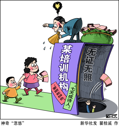 近年來,功利教育觀大行其道,培訓市場魚龍混雜,推波助瀾。不少家長架不住廣告“忽悠”,老師“洗腦”,報班花費成千上萬,可到頭來沒讓孩子練就“開掛”本領,反被部分培訓機構坑錢、坑娃、坑智商。種種洗腦式營銷,消費家長們的焦慮,加劇拔苗助長的功利心,違背了教育育人為本的初心。