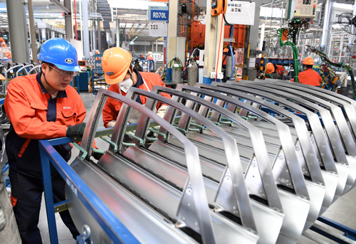2018年3月27日,工人們在浙江臨海的吉利汽車生產車間工作 殷博古 攝