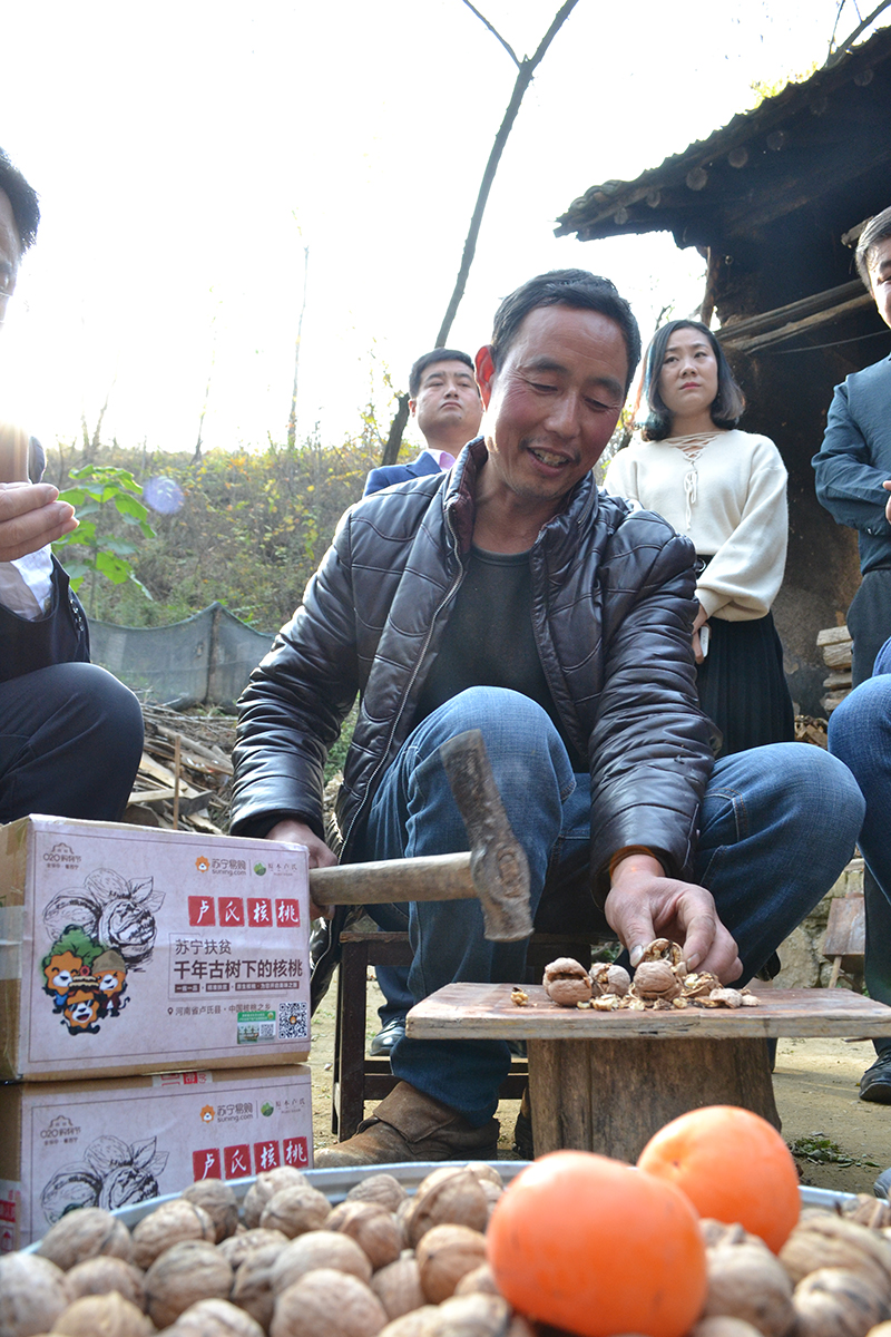 今年,針對盧氏縣情況,蘇寧河南分公司派出專人深入盧氏縣調研考察,先后幫助該縣打開了核桃和香菇的銷路。“雙11”期間,又與盧氏縣商務局等部門聯合將盧氏核桃確定為河南省唯一的線上線下融合聯動產品,并以高于市場價優先從貧困戶進行收購,集中多渠道推廣盧氏公共品牌“原本盧氏”產品。