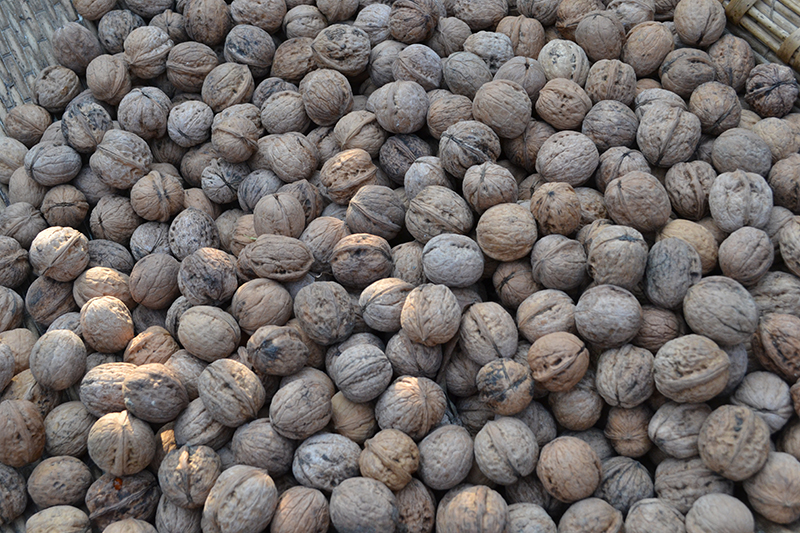 ▲ 今秋,李現法房前屋后100多斤的核桃全部被蘇寧高價收走,樂得合不攏嘴