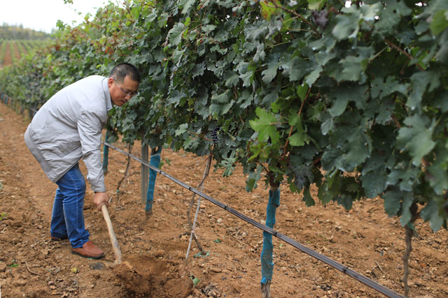 杜琦是涇陽縣一家葡萄基地的負責人,他見證了釀酒葡萄產業美酒富民的經過。“原來我們這都是單家獨戶種植,管理不規范,技術不到位,果子質量參差不齊,我就想著能把土地都集中起來,形成大葡萄園,剛好2001年張裕葡萄酒廠到了,我就跟他們合作,為他們提供釀酒葡萄。”