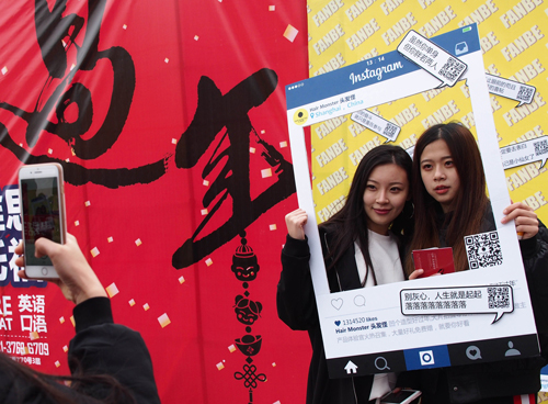 上海視覺藝術學院新媒體藝術專業的學生在現場為同學做直播秀 任瓏 攝